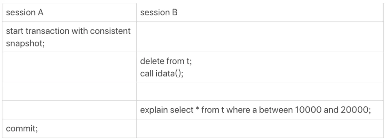 - 第三句,Q2是加了force index(a)来和session B原来的查询语句执行情况对比。